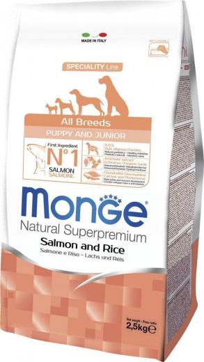 Monge Сухой корм Speciality Line Puppy and Junior All Breed Salmon and Rice с лососем и рисом для щенков всех пород 2,5кг