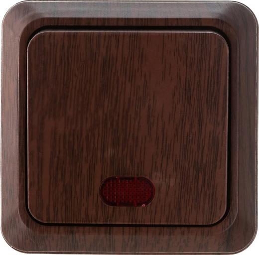 Intro 2-102-10 Выключатель Quadro 2-102-10 одноклавишный с подсветкой, 10А-250В, IP20, ОУ, венге, цена за 1 шт