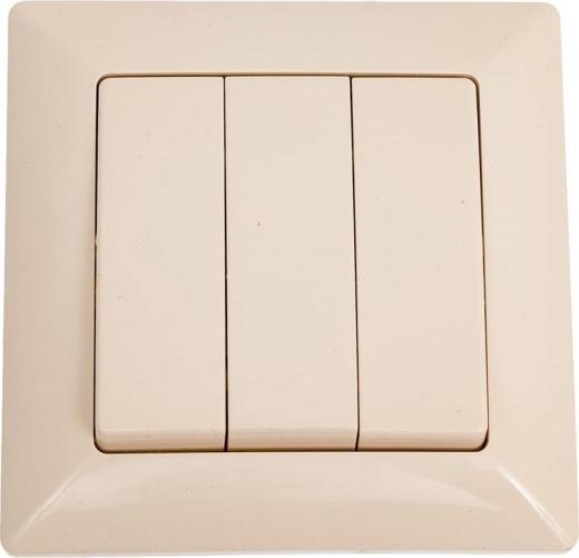 Intro 4-106-02 Выключатель Solo 4-106-02 трехклавишный 10А-250В, IP20, СУ, слоновая кость, цена за 1 шт