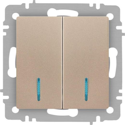 Intro 6-105-04 Выключатель Accent 6-105-04 двойной с подсветкой, 10А-250В, IP20, СУ, AL/CU, шампань, цена за 1 шт